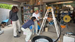 現場で使う材料の検品や電線管曲げの練習、端末処理の勉強など、