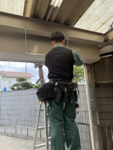 支持の間隔や固定方法を確認し、一つひとつの工程を丁寧に行っています。